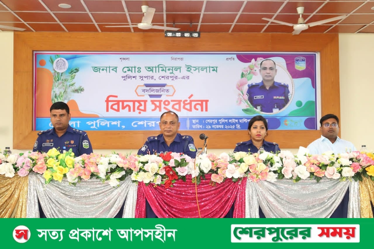 শেরপুর জেলা পুলিশ সুপার আমিনুল ইসলাম এর বদলিজনিত বিদায় সংবর্ধনা