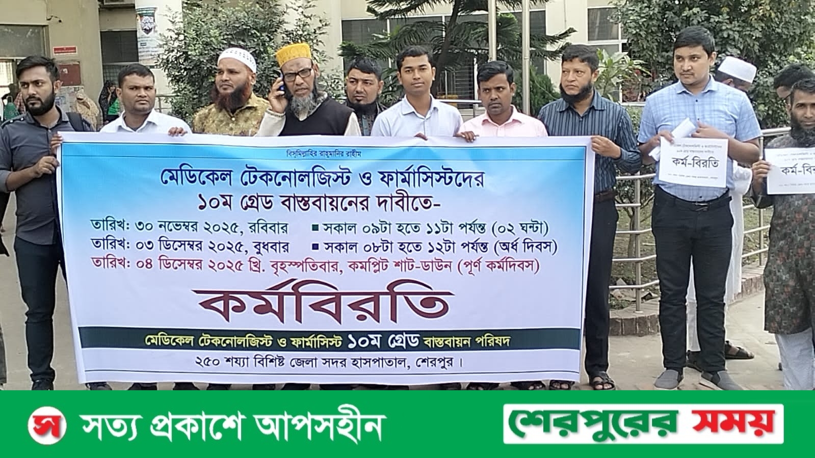 শেরপুরে ১০ গ্রেড বাস্তবায়নের দাবিতে দুই ঘন্টা কর্ম বিরতি