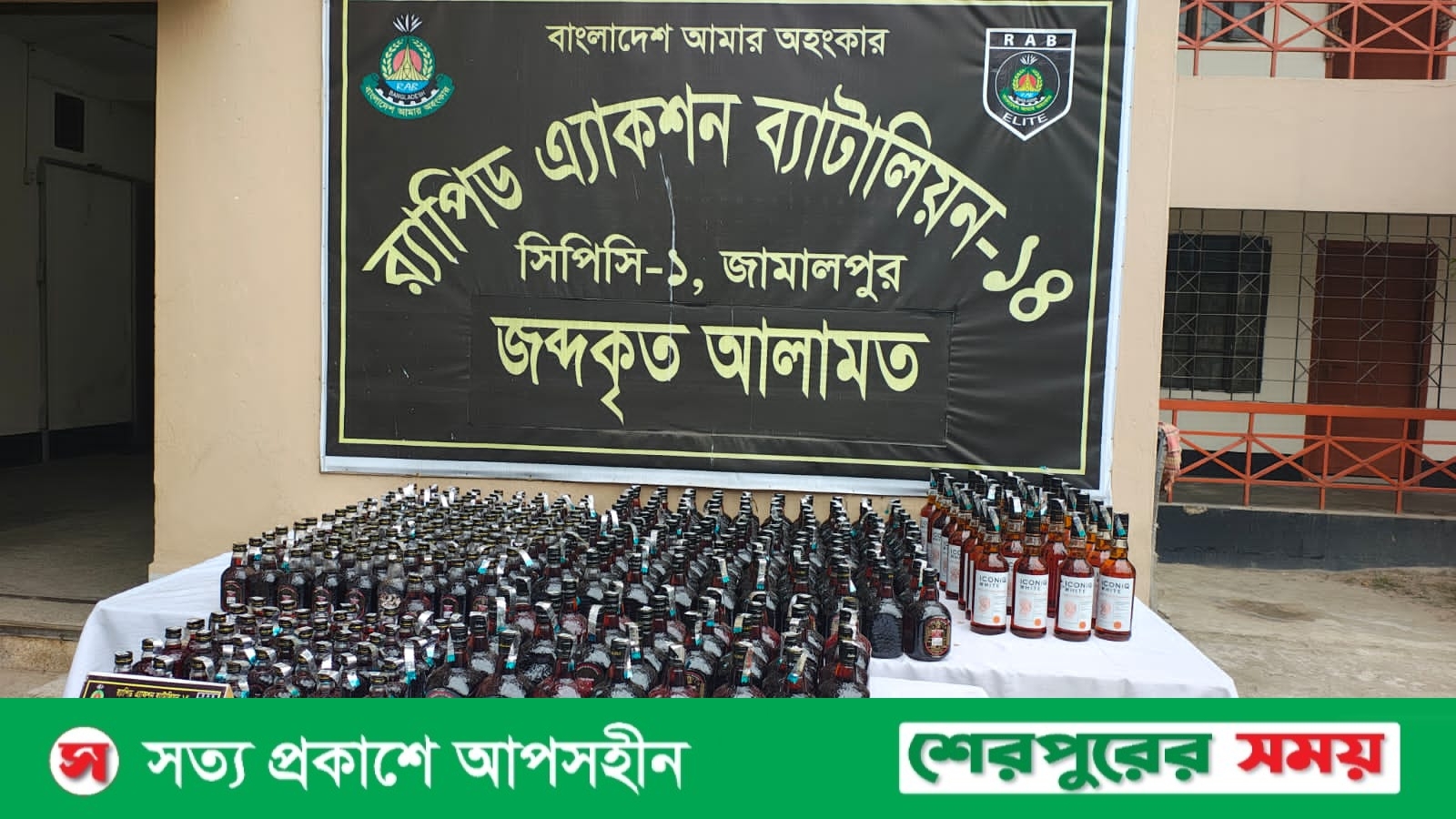 শেরপুর সীমান্তে ৩৬৯ বোতল বিদেশি মদ সহ দুই মাদক কারবারি কে আটক করেছে র্যাব -১৪