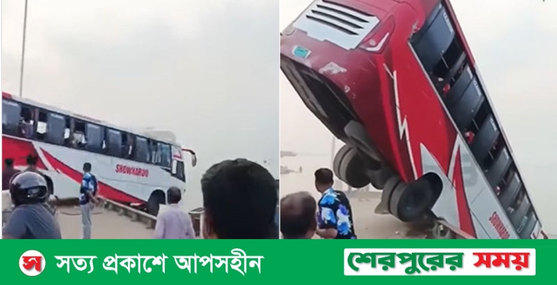 রাজবাড়ী দৌলতদিয়ায় ঘাটে ফেরিতে ওঠার সময় বাস পড়ে গেল নদীতে নিখোঁজ অনেকে