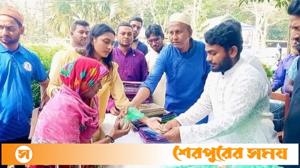 শেরপুরে দরিদ্র ও অসহায় মানুষের জন্য আজকের তারুণ্য নামে একটি স্বেচ্ছাসেবী সংগঠন ১০ টাকায় দিচ্ছে গরুর মাংস ও শাড়ি-লুঙ্গি।