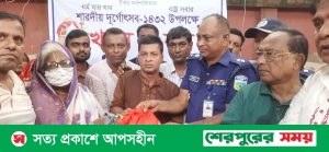 এদিকে শারদীয় দুর্গোৎসব উপলক্ষে বাংলাদেশ হিন্দু বৌদ্ধ খ্রিস্টান কল্যাণ ফ্রন্ট, শেরপুর জেলা শাখার আয়োজনে শেরপুর শহরে আরেকটি শোভাযাত্রা এবং দুস্থ ও অসহায় মানুষের মধ্যে বস্ত্র ও খাদ্য সামগ্রী বিতরণ করা হয়।