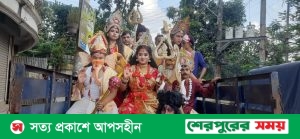 শেরপুরে শারদীয় দুর্গোৎসব উপলক্ষে দেবীর আগমনী শোভাযাত্রা অনুষ্ঠিত